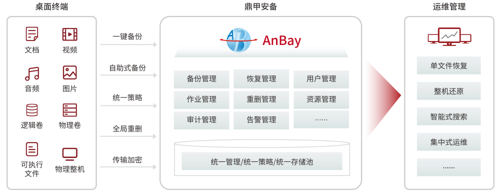 它提供多樣化的備份恢復策略、集中管理和日志審計,保護企業(yè)數(shù)據(jù)資產(chǎn),簡化桌面終端運維復雜度。