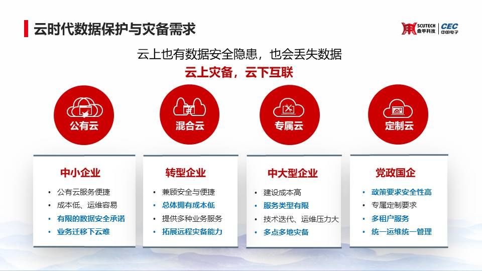 我們先來看看云時代數據保護的行業現狀與市場定位。相信這張圖片大家都非常熟悉了,鼎甲但凡要做市場的宣傳推廣,或是解讀我們的數據保護方案時,必展示的一張圖片。鼎甲主要面向傳統數據中心、云計算數據中心、大數據數據中心來提供相應的災備解決方案。我們重點是定位在云時代為客戶提供高效可靠的數據保護,這樣做是有原因的。
