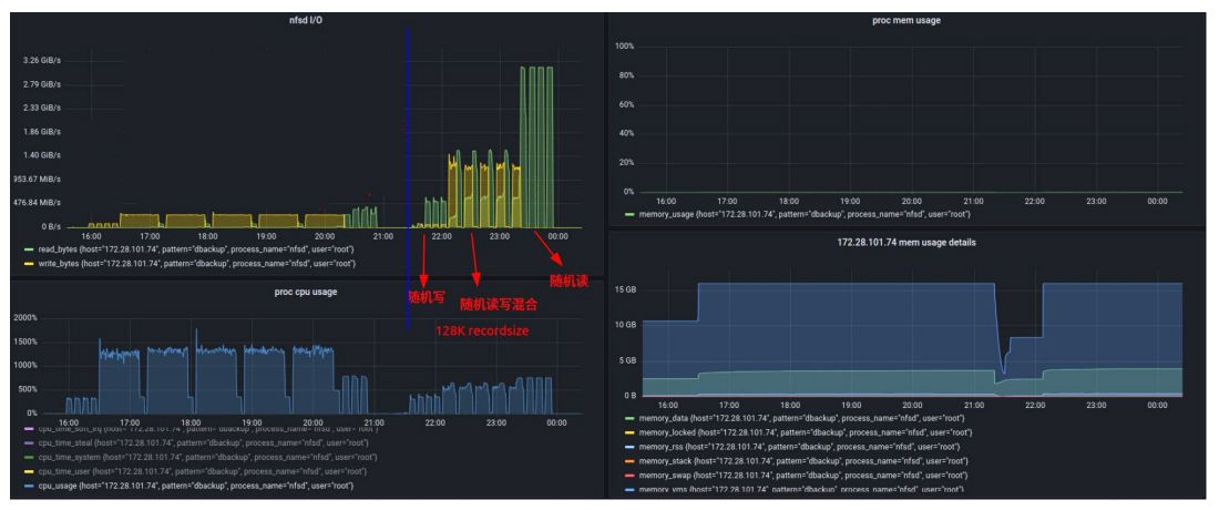 在某銀行的測試中,使用鼎甲備份一體機在1分鐘的時間內,完成100臺虛擬機的同時掛載。在穩定性測試環節,承載這100臺虛擬機的備份一體機,存儲性能也十分出色,隨機讀寫混合 IOPS 性能持續保持16k,能夠滿足業務系統的穩定運行,得到用戶的認可。