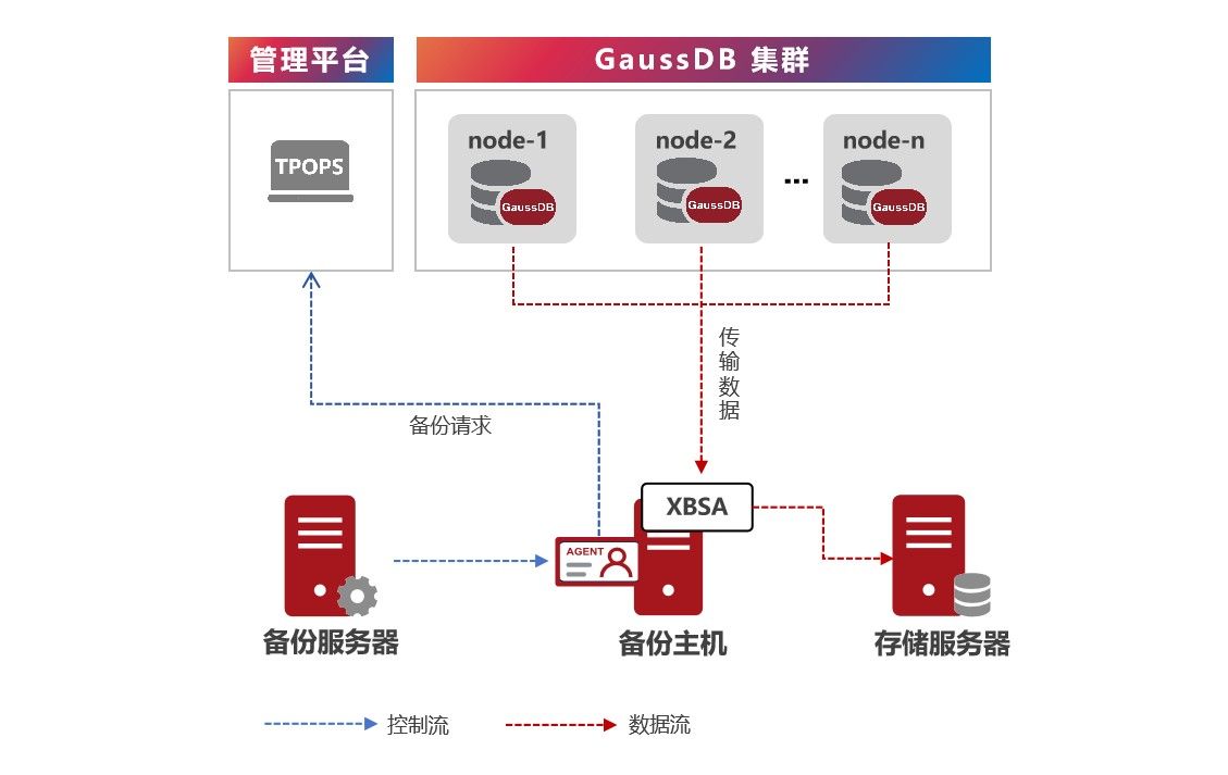 華為 GaussDB 提供?TPOPS API ,涵蓋備份恢復(fù)等操作的 RESTful 接口,DBackup 新版在傳統(tǒng) Roach 備份方案上,新增基于 TPOPS 接口以及 XBSA 協(xié)議的高效備份恢復(fù)方案。
