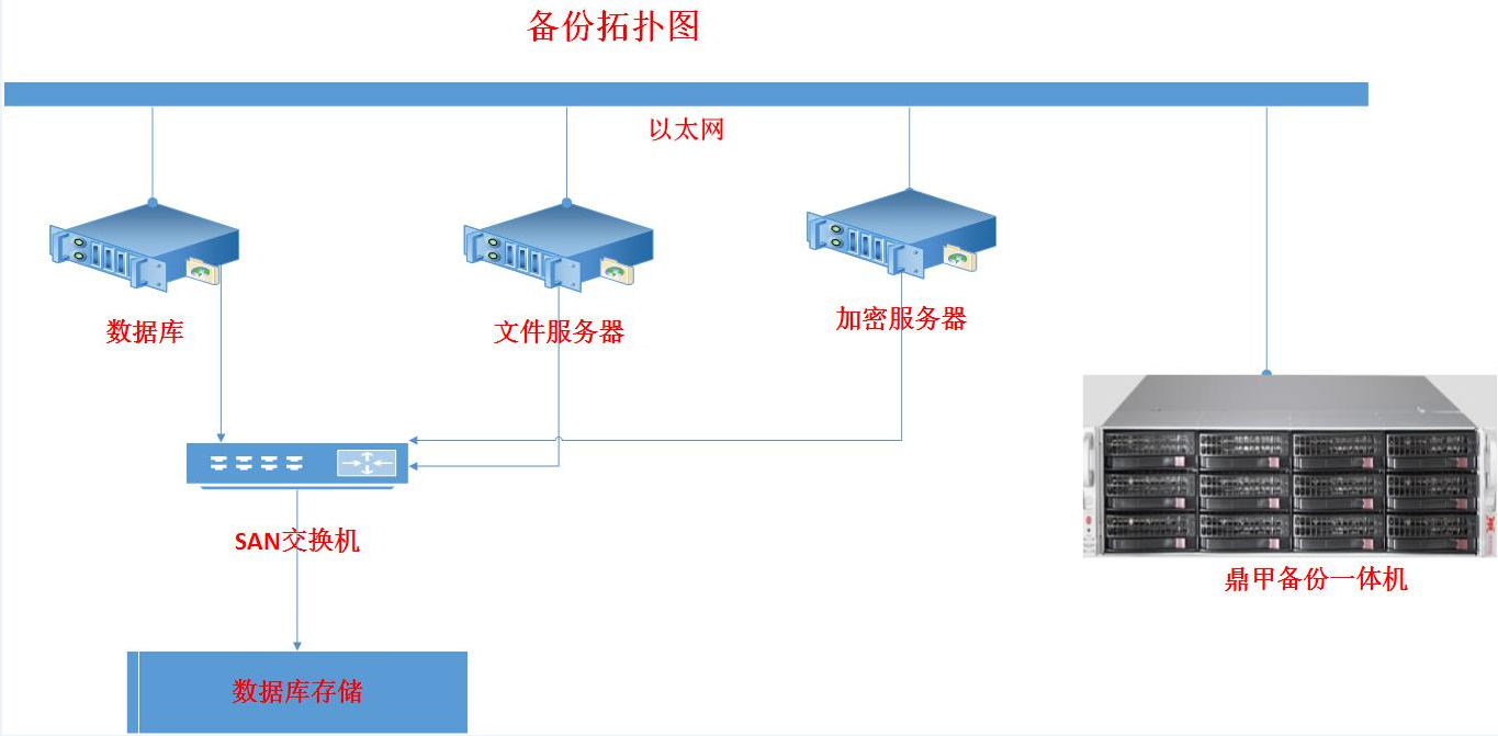 在數(shù)據(jù)庫服務(wù)器、文件服務(wù)器、加密服務(wù)器上安裝鼎甲迪備客戶端,即可實(shí)現(xiàn)在本地局域網(wǎng)內(nèi)將數(shù)據(jù)備份到鼎甲一體機(jī)。通過鼎甲運(yùn)維級分布式Web管理平臺,對應(yīng)用服務(wù)器和數(shù)據(jù)保護(hù)服務(wù)器進(jìn)行統(tǒng)一的配置和管理。