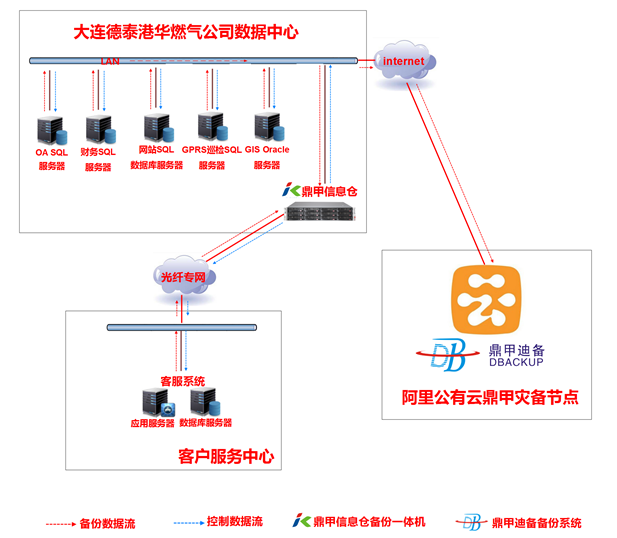 大連德泰港華燃氣公司是國有燃氣公司與香港港華公司合資公司,支撐著大連開發區燃氣的供應,在沒有部署鼎甲的備份系統之前,用戶重要業務系統的oracle、MSSQL數據庫、文件完全需要人工手動的定期備份,對做數據備份人的經驗和能力要求特別高,費時費力,備份數據分散,不能進行統一管理,而且有時還存在恢復失敗的情況